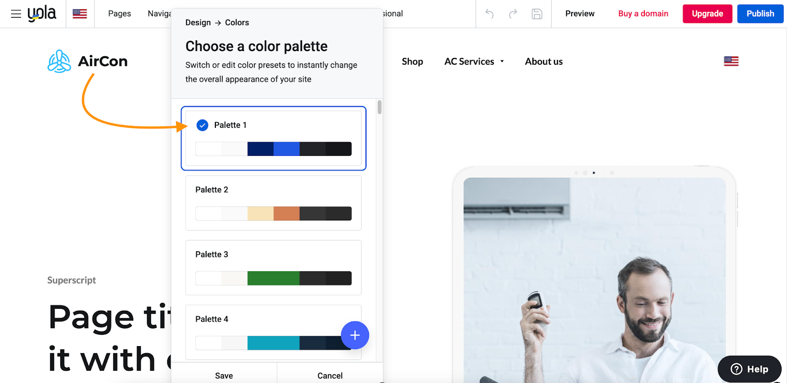 Here’s how you can choose a different predefined color palette for your website: