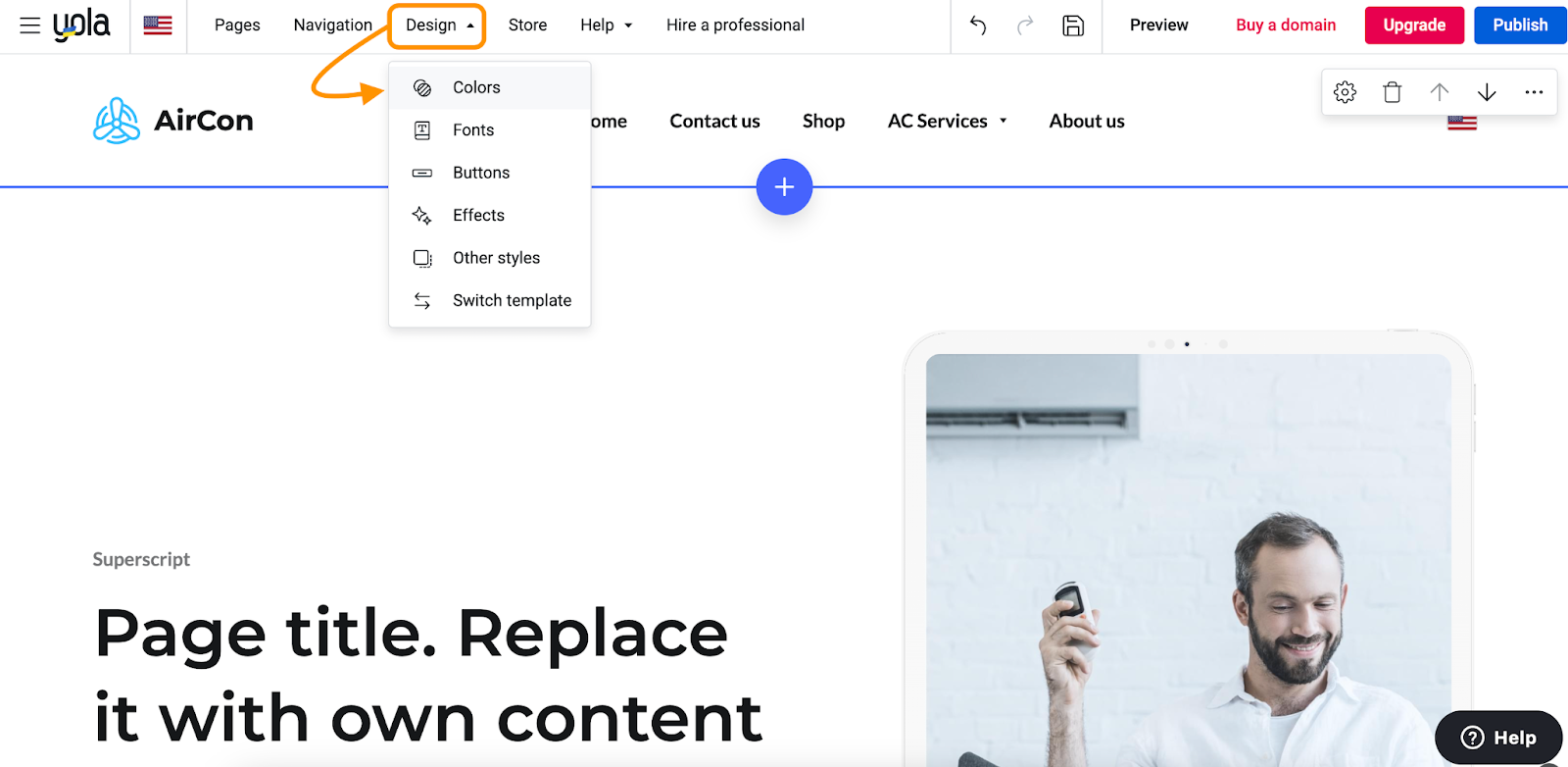 Alternatively, click the Menu button on the top left corner and choose Design -> Colors from the Sidebar. -